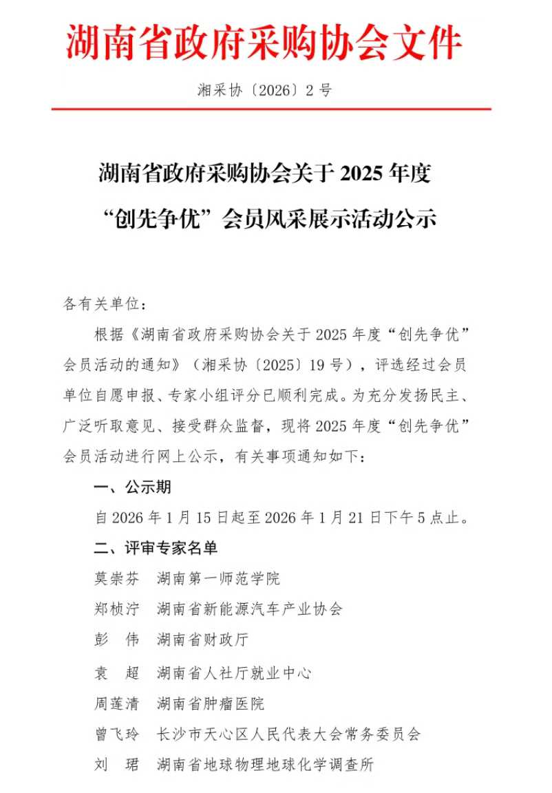 公司获评“湖南省政府采购协会2025年度优秀代理机构”
